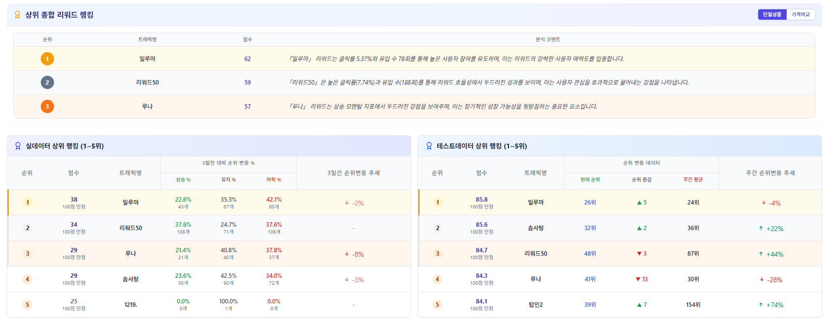 | 3위 | 리워드50 | 84.7 | 48위 | +44% |