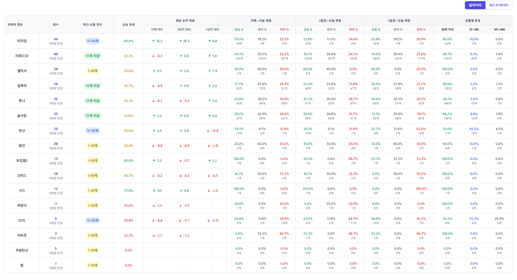 오늘은 네이버 리워드 광고 데이터 분석을 바탕으로, 실데이터와 테스트데이터 순위를 종합 정리해보았습니다.