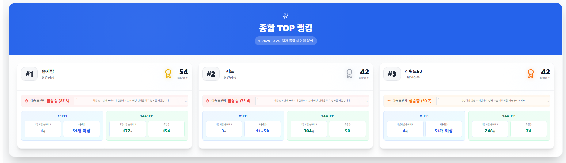 🏆 2025년 10월 23일 종합 TOP 랭킹 분석