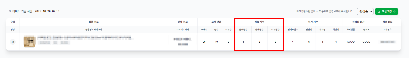 현재 순위는 34위, 즉 노출 경쟁력 측면에서 아직 부족한 상태입니다.