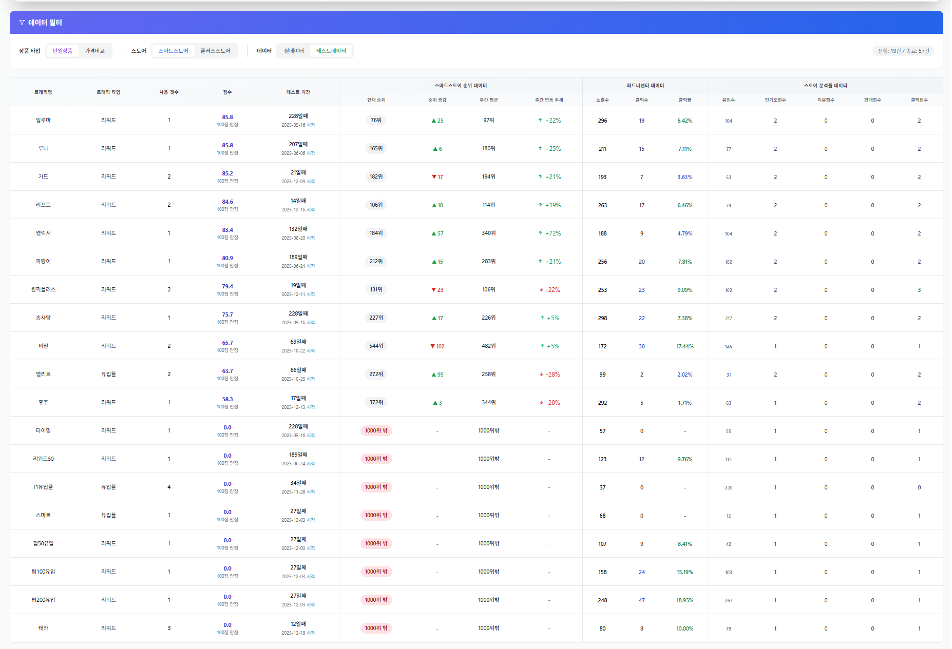 👉 테스트데이터는 신규 상품, 상세페이지 실험, 썸네일 A/B 테스트에 활용하기 좋습니다.