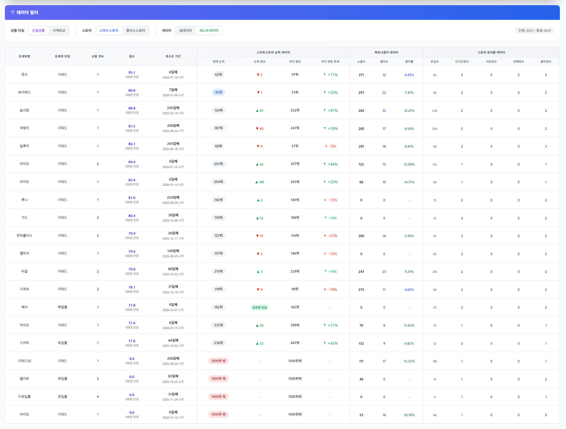 - 테스트 구간에서 빠른 순위 상승 반응 확인됨