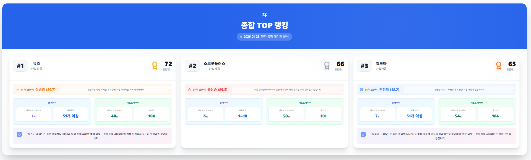 🏆 종합 TOP 키워드 현황 (실·테스트 데이터 기준)