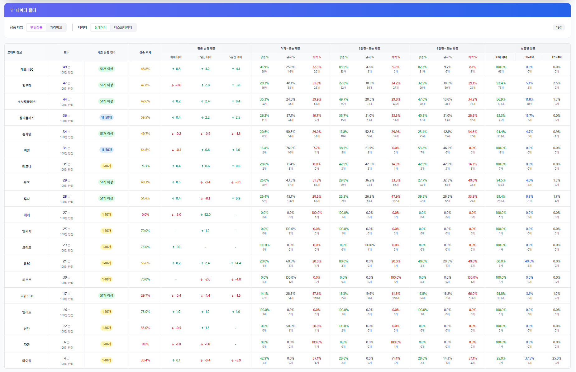실데이터 · 테스트데이터를 교차 분석해 정리해드립니다.