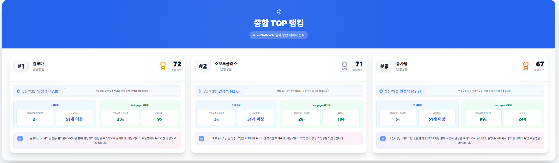 🏆 종합 TOP 랭킹 (실데이터 반영)